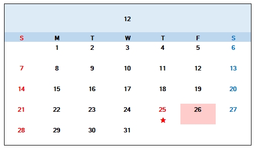 | 12/26(금) | 크리스마스 다음날 | 연말 연휴 확장 |